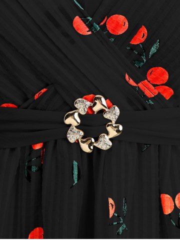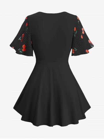 Ensemble grande taille : chemisier croisé à carreaux gaufrés cerises et pantalon évasé à imprimé floral. - Noir - Noir