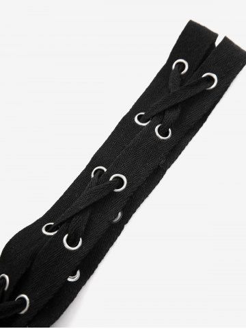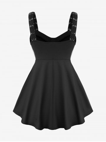 Ensemble grande taille composé d'un débardeur en maille superposée à lacets et d'un legging patchwork en résille ajourée à motif de crâne - Noir - Noir