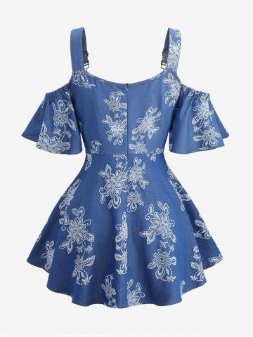 Ensemble grande taille composé d'un haut à épaules dénudées à ceinture croisée imprimée de fleurs et d'un legging à tête de mort. - Bleu - Bleu