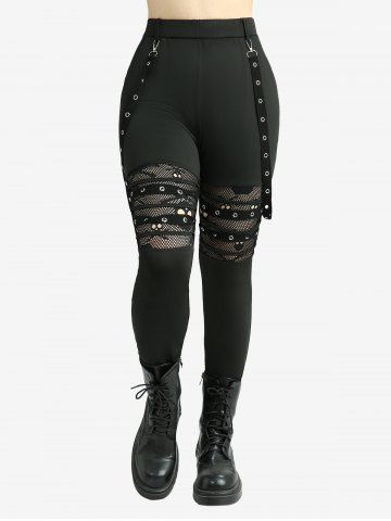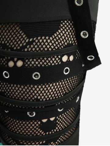 Ensembles Assortis > Ensemble grande taille composé d'un haut à épaules dénudées à ceinture croisée imprimée de fleurs et d'un legging à tête de mort.