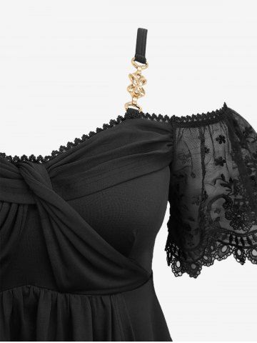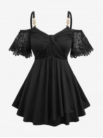 Plus Size Floral Lace Jacquard Embroidery Sleeve Cold Shoulder Crossover Top