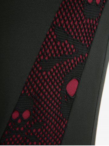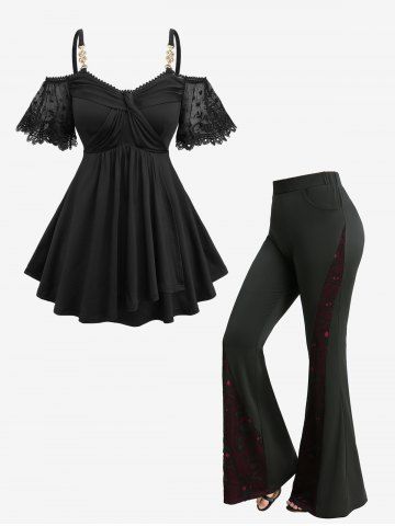 Ensembles Assortis > Ensemble grande taille composé d'un haut à épaules dénudées en dentelle jacquard à broderie florale et d'un pantalon évasé en maille patchwork à motif tête de mort