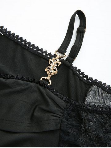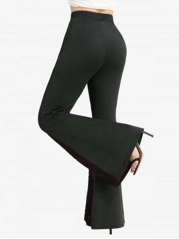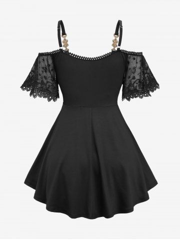 Ensemble grande taille composé d'un haut à épaules dénudées en dentelle jacquard à broderie florale et d'un pantalon évasé en maille patchwork à motif tête de mort - Noir - Noir