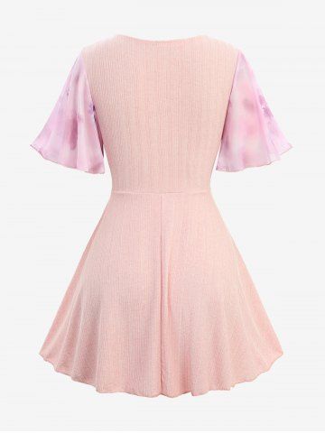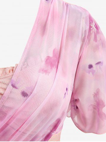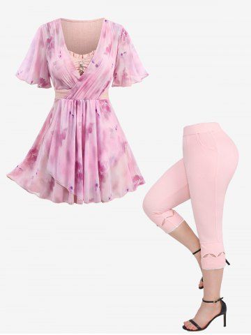 a*****a5Plus Size Flowers Watercolor Painting Print Surplice Chain Panel Ruched Ruffles Tulip Hem TopColor: LIGHT BLUE Size: M | US 10I'm obsessed with this shirt! It is SO cute and comfortable, the flowy material makes you feel elegant yet adorable! The sleeves are soft and the fit is so flattering!