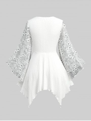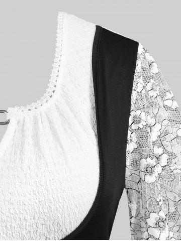 Ensemble grande taille comprenant un haut corset à manches évasées en dentelle fleurie, une jupe trapèze à poches superposées et faux boutons, et un haut 2 en 1 orné d'un corset à manches évasées et d'une jupe à poches superposées. - Blanc - Blanc