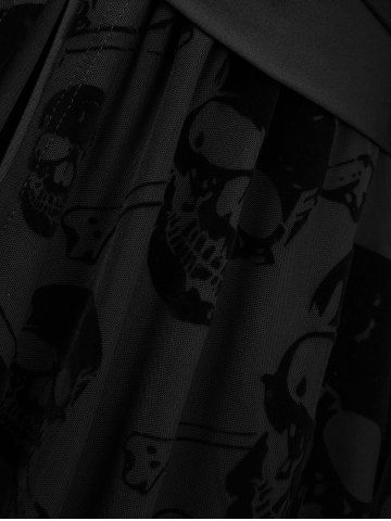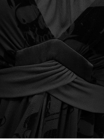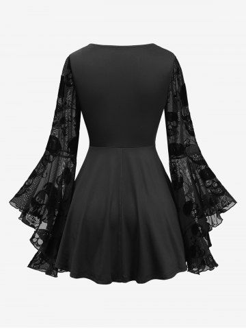 Ensemble grande taille : haut à manches évasées orné de dentelle floquée à têtes de mort et pantalon à jambes croisées fleuries - Noir - Noir