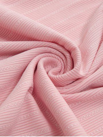 Jacquard Twist Ribbed Lace Trim Cold Shoulder Top and Wide Leg Pants Plus Size Outfit - Rose Clair - Rose Léger