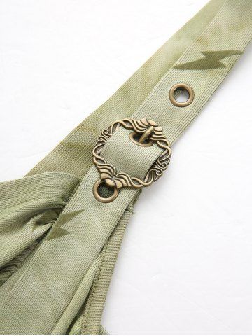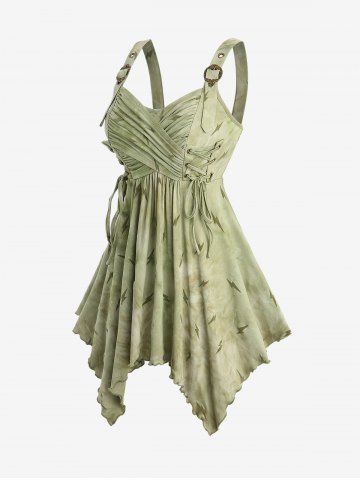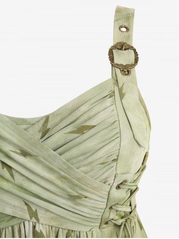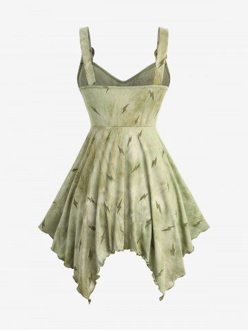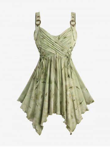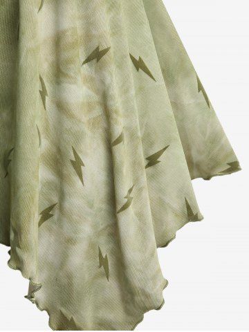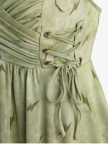 Tie Dye Print Surplice Lace Up Tank Top and Skull Leggings Plus Size Outfit - Vert - Vert