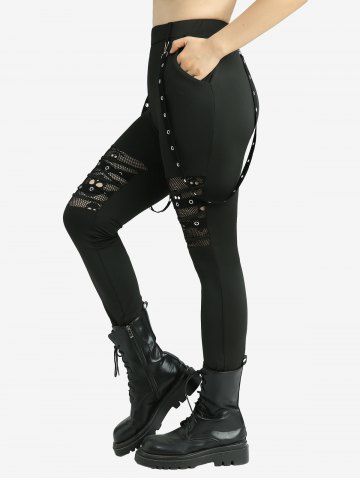 Ensembles Assortis> Tie Dye Print Surplice Lace Up Tank Top and Skull Leggings Plus Size Outfit