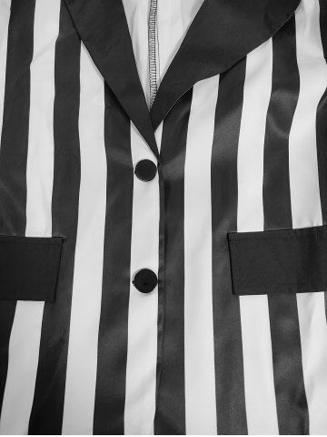 Blazer Rayure Blanche et Noir Imprimés avec Poches à Col Revers - Noir - Noir