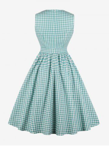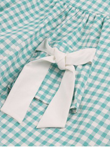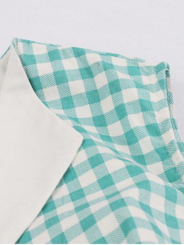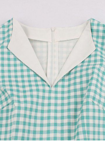 Robe Vintage à Carreaux Imprimé à Col Revers avec Nœud Papillon - Vert Clair - Vert Clair