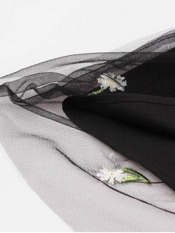 Robe Vintage Fleur Brodée en Maille Manches Longues à Col Carré - Noir - Noir