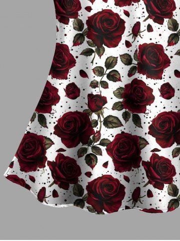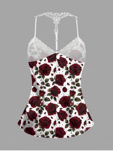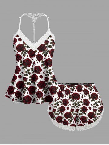 Haut de pyjama nuisette à bretelles et imprimé roses pour la Saint-Valentin (grandes tailles), avec bordure en dentelle. - Rouge Foncé - 4xl