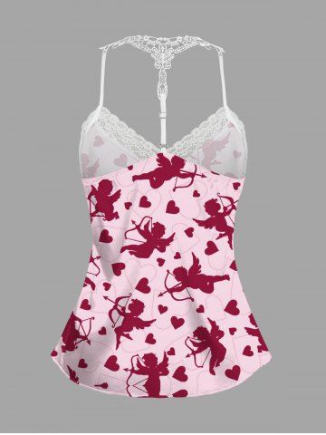 Plus Size Heart Cupid Print Valentines Lace Trim Crochet Pajama Top - Rose Clair - Rose Léger