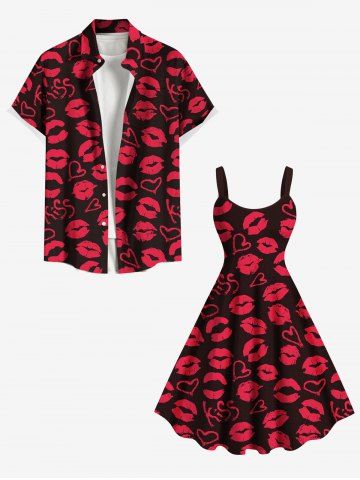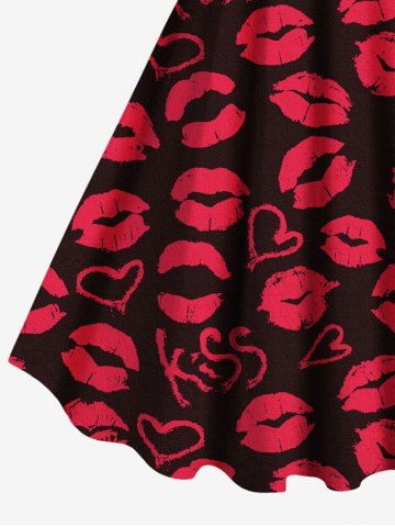 Robe débardeur grande taille imprimée cœurs et lèvres pour la Saint-Valentin - Noir - Noir