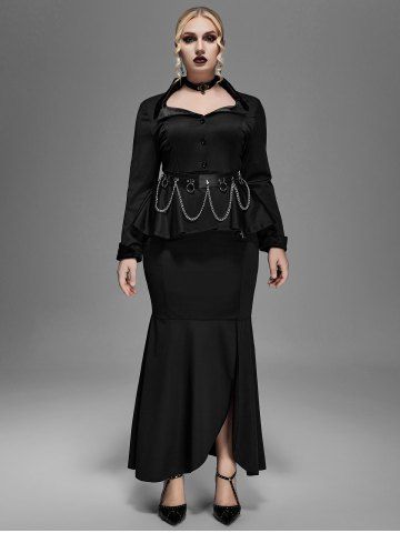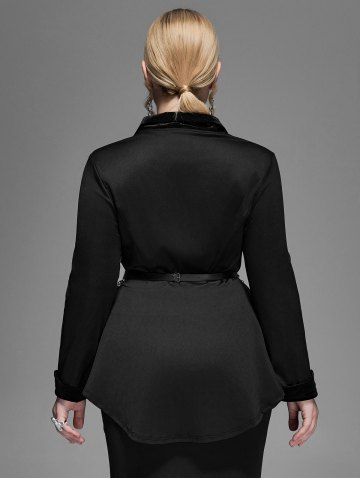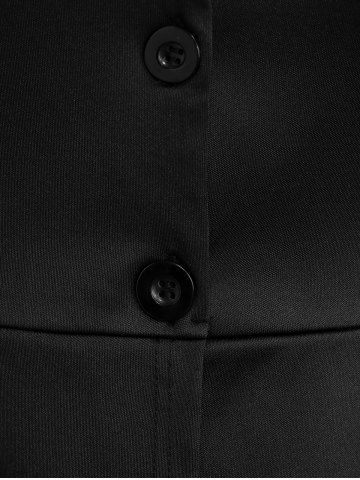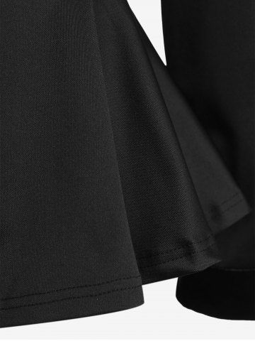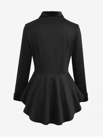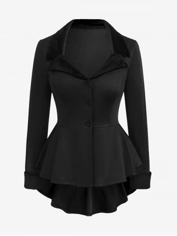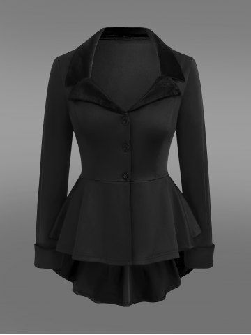 Gothic Lapel Collar Buttons High Low Ruffles Pleated Solid Coat - Noir - Noir
