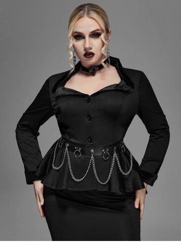 Hauts Alternatifs et Gothiques > Gothic Lapel Collar Buttons High Low Ruffles Pleated Solid Coat