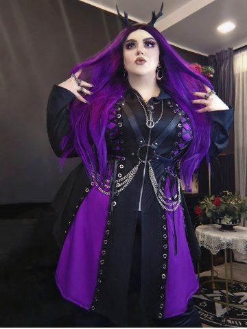 Manteau à Capuche Gothique en Blocs de Couleurs à Lacets avec Œillet - Concorde - 2x | Us 18-20
