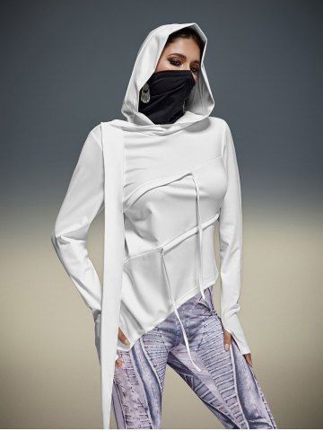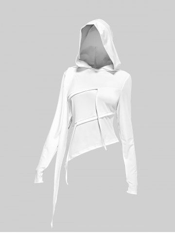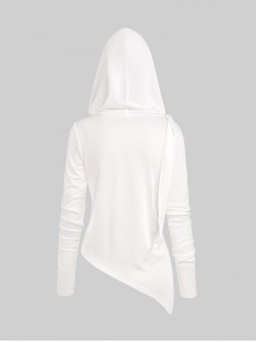 Haut à Capuche Asymétrique Gothique en Couleur Unie avec Ruban - Blanc - Blanc