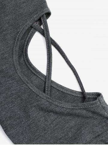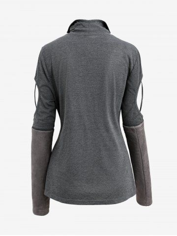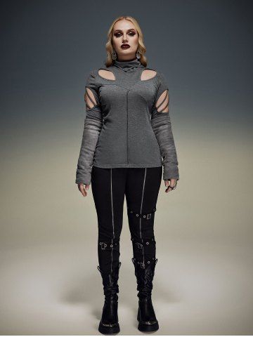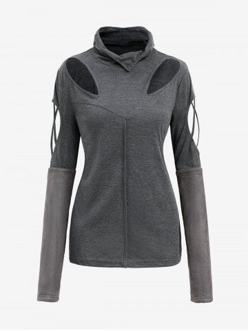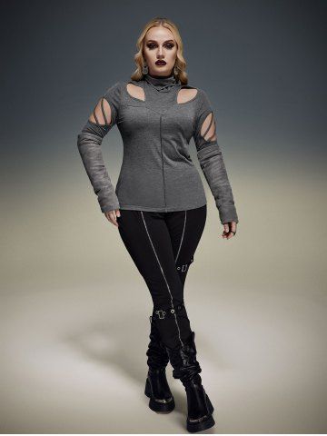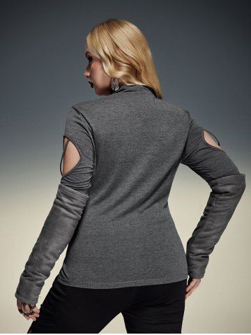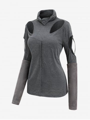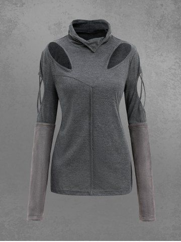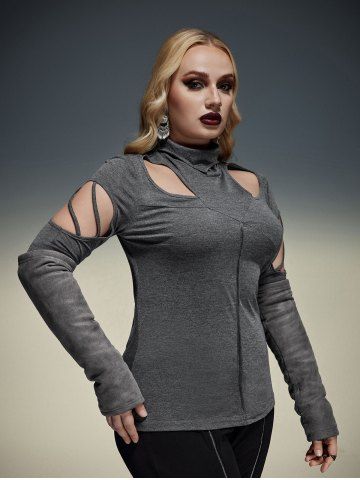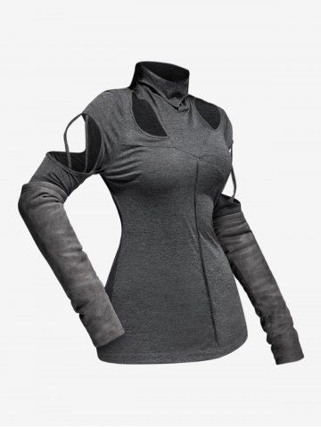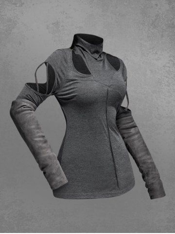 T-shirt Gothique Jointif Evidé Manches Longues à Col Bénitier - Gris Foncé - Gris Foncé