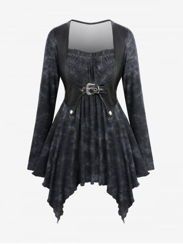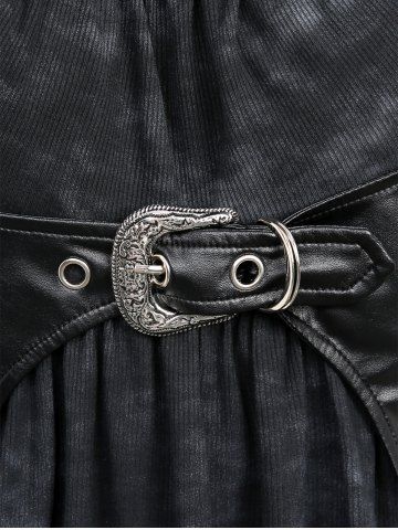 Hauts Alternatifs et Gothiques > T-shirt Mouchoir Gothique Teinté Boucle à Volants en PU 2 en 1
