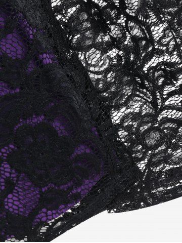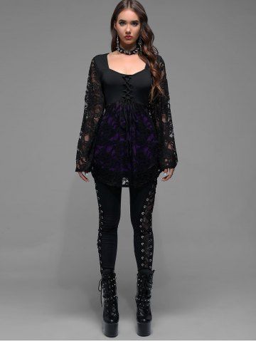 T-shirt D'Halloween Bicolore Sorcière à Manches Evasées à Lacets - Noir - Noir