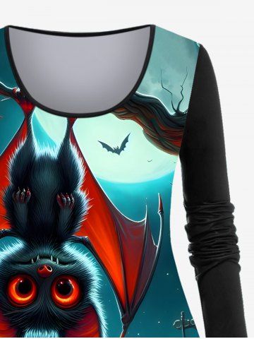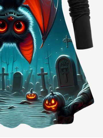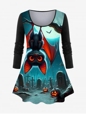 T-shirt D'Halloween Brillant Ombré Chauve-souris Citrouille de Grande Taille à Paillettes - Noir - Noir