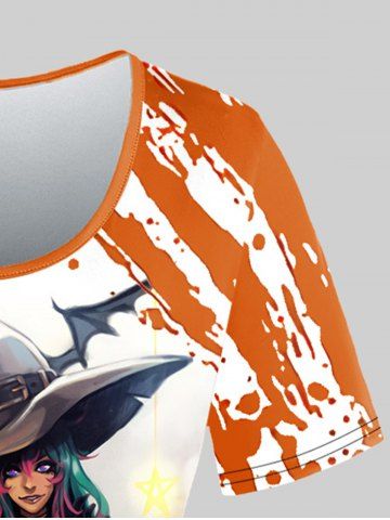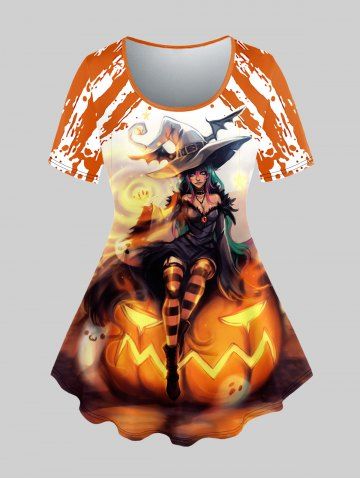j*****i5Plus Size Pumpkin Hat Witch Ghost Printed Halloween T-shirt and Flare Pants OutfitColor: ORANGEAll items are here and it like the pic