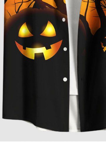 Homme> Chemise à boutons et poches grande taille pour homme, imprimé citrouille d'Halloween