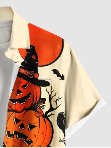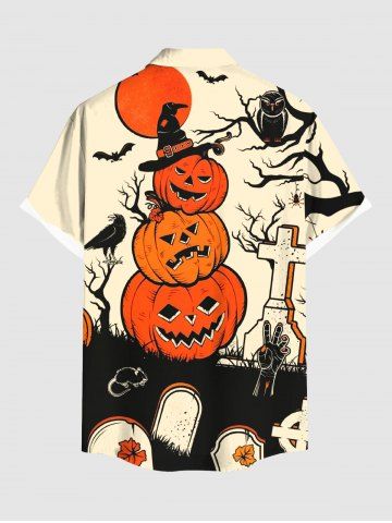 Homme> Chemise à boutons et poches pour homme, costume d'Halloween grande taille, imprimé citrouille, croix, hibou, arbre, pierre tombale
