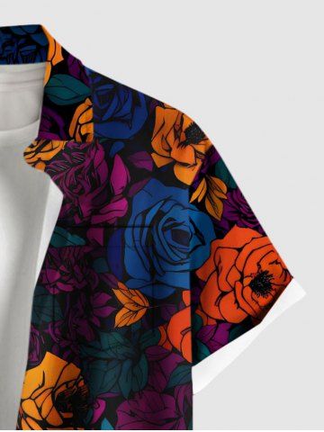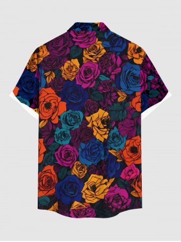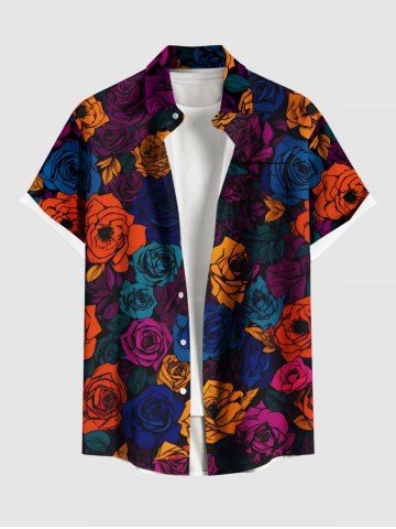 Chemise à boutons et poches pour homme, grande taille, imprimé de roses colorées pour la Saint-Valentin - Bleu Marine - Bleu Marin