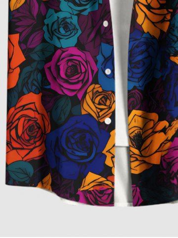 Homme> Chemise à boutons et poches pour homme, grande taille, imprimé de roses colorées pour la Saint-Valentin