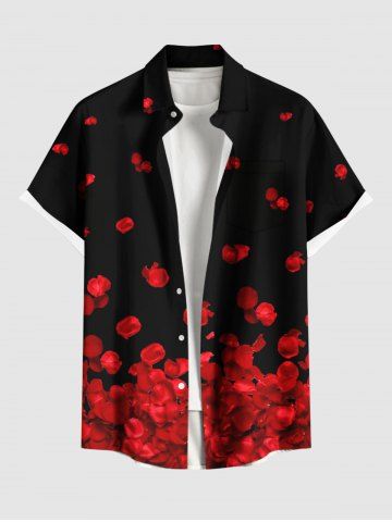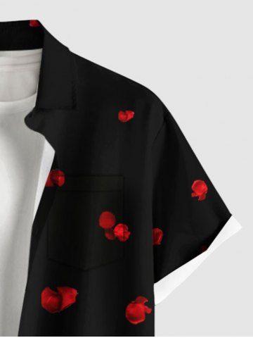 Chemise à boutons et poches pour homme, grande taille, imprimé pétales de roses, pour la Saint-Valentin - Noir - Noir