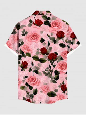 Chemise à boutons et poches pour homme, grande taille, imprimé rose et feuilles, idéale pour la Saint-Valentin. - Rose Clair - Rose Léger
