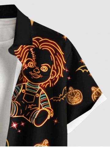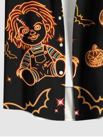 Chemise à boutons et poches pour homme, grande taille, motif citrouille, chauve-souris, poupée, étoile, galaxie, Halloween - Noir - Noir