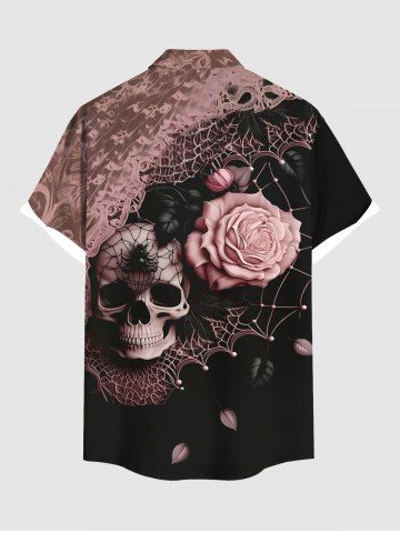 Homme> Chemise à boutons et poches pour homme, grande taille, motif tête de mort, roses, fleurs, toile d'araignée