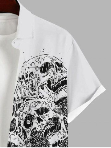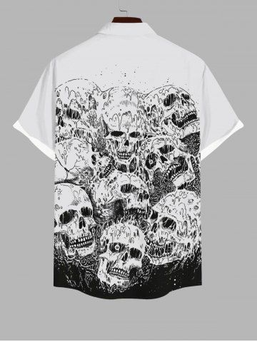 Chemise à boutons et poches pour homme, motif tête de mort, grande taille, costume d'Halloween - Gris Clair - Gris Clair