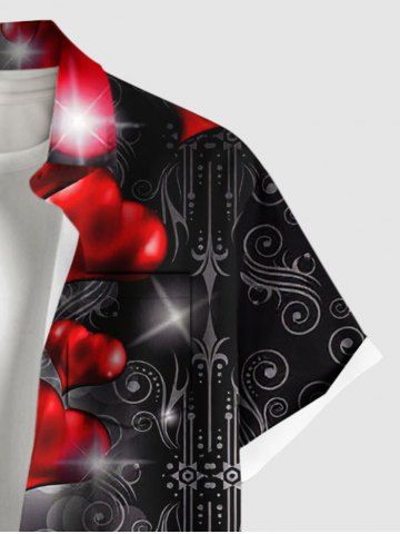 Chemise à poches boutonnées grande taille pour homme, imprimé ballons cœurs pailletés, Saint-Valentin - Noir - Noir