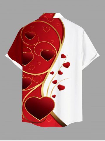 Chemise à poches boutonnées, imprimé cœurs et colorblock, grande taille, pour homme - Rouge - Rouge