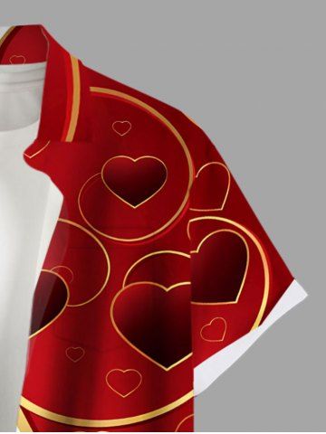Chemise à poches boutonnées, imprimé cœurs et colorblock, grande taille, pour homme - Rouge - Rouge