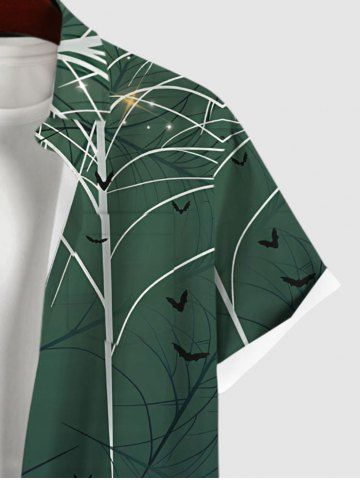 Chemise Costume D'Halloween Toile D'Araignée Chauve-souris et Etoile Imprimés avec Poche de Grande Taille - Vert Profond - M