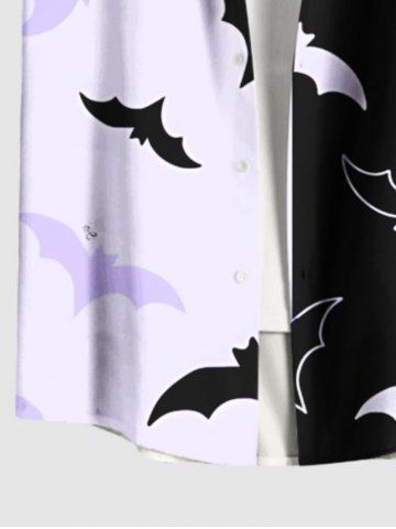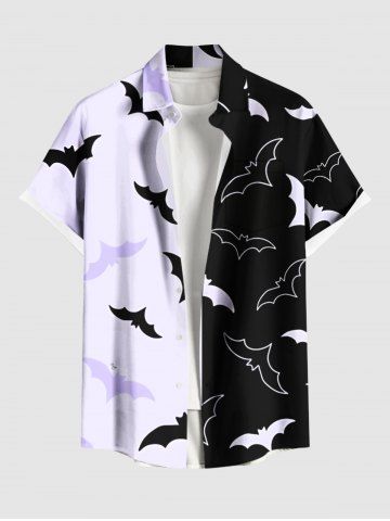 Homme > Chemise d'Halloween bicolore à imprimé chauve-souris, grande taille, avec poches boutonnées, pour homme