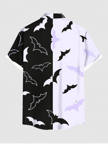 Chemise d'Halloween bicolore à imprimé chauve-souris, grande taille, avec poches boutonnées, pour homme - Noir - Noir