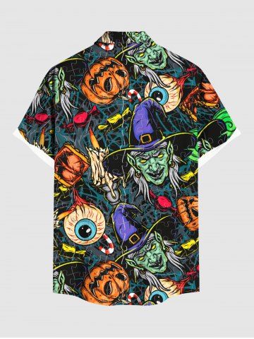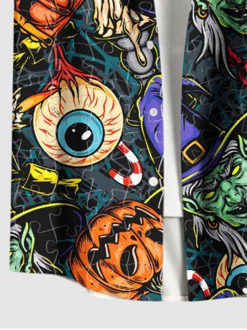Chemise d'Halloween grande taille à imprimé citrouille et yeux de sorcier pour homme - Noir - Noir