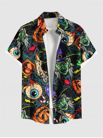 Homme> Chemise d'Halloween grande taille à imprimé citrouille et yeux de sorcier pour homme