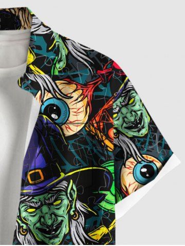 Chemise d'Halloween grande taille à imprimé citrouille et yeux de sorcier pour homme - Noir - Noir