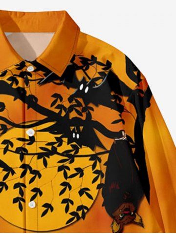 Chemise D'Halloween Boutonné Branche D'Arbre Lune Imprimée Grande Taille pour Homme - Orange Foncé - 2xl