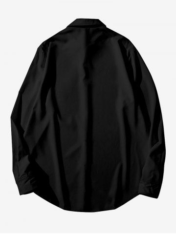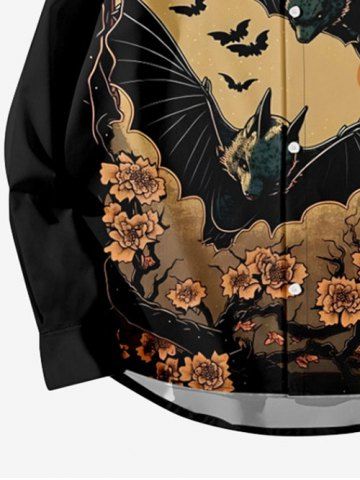 Chemise D'Halloween Boutonnée Déchiré Fleur Arbre et Chauve-souris Imprimés de Grande Taille à Manches Longues - Noir - Noir