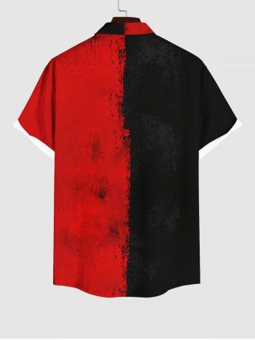 Homme> Chemise D'Halloween Boutonnée Peinture D'Encre Eclaboussée Imprimée en Blocs de Couleurs Grande Taille avec Poche