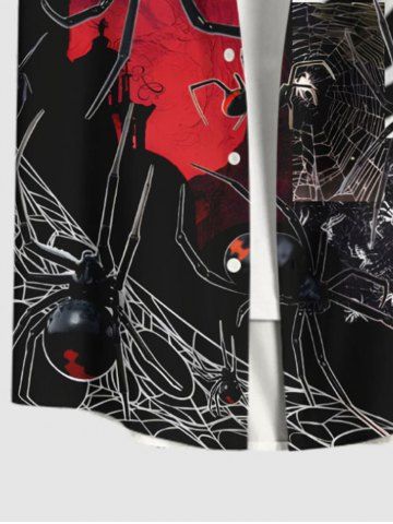 Chemise D'Halloween Boutonnée Toile D'Araignée Flottante Grande Taille avec Poche Cachée - Noir - Noir